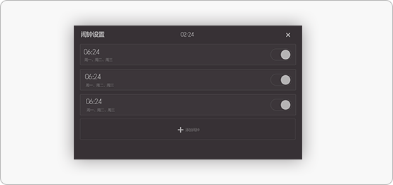 點擊時(shí)間可進(jìn)入鬧鍾設置,時(shí)間設備可以系統設置中完成(chéng)。
