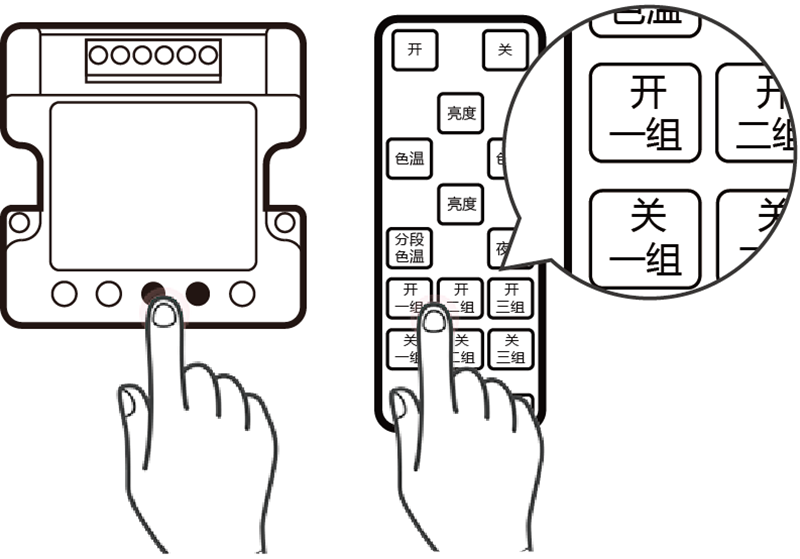 ②點對(duì)點遙控配對(duì)(遙控器及其他可配對(duì)的面(miàn)闆開(kāi)關)