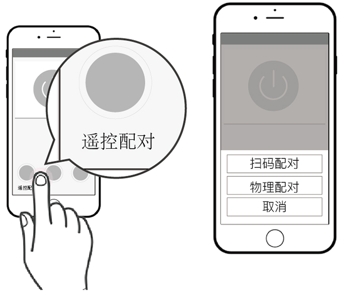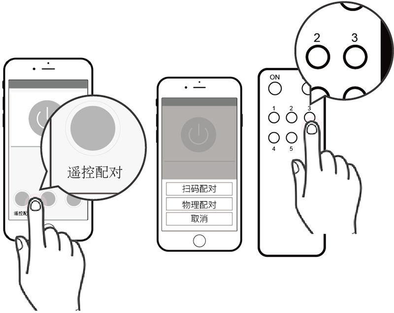 (2) 打開(kāi)app進(jìn)入操作界面(miàn)點擊“遙控配對(duì)”,點擊“物理配對(duì)”