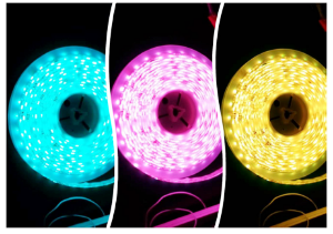 2  冷暖燈帶 冷暖無極調光調色 免布線開(kāi)關+遙控器+手機遠程控制 輸入電壓:24Vdc 功率:50Wmax/盤 尺寸:5米一盤 (電源和控制器另配!)
